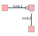 IlvGeneralLink inherits from IlvPolylineLinkImage. The default stroke parameters are JOIN_MITER and CAP_SQUARE. A miter join is a sharp join formed by extending one edge of each link. You can change the end cap and join styles, as shown in the following figure.