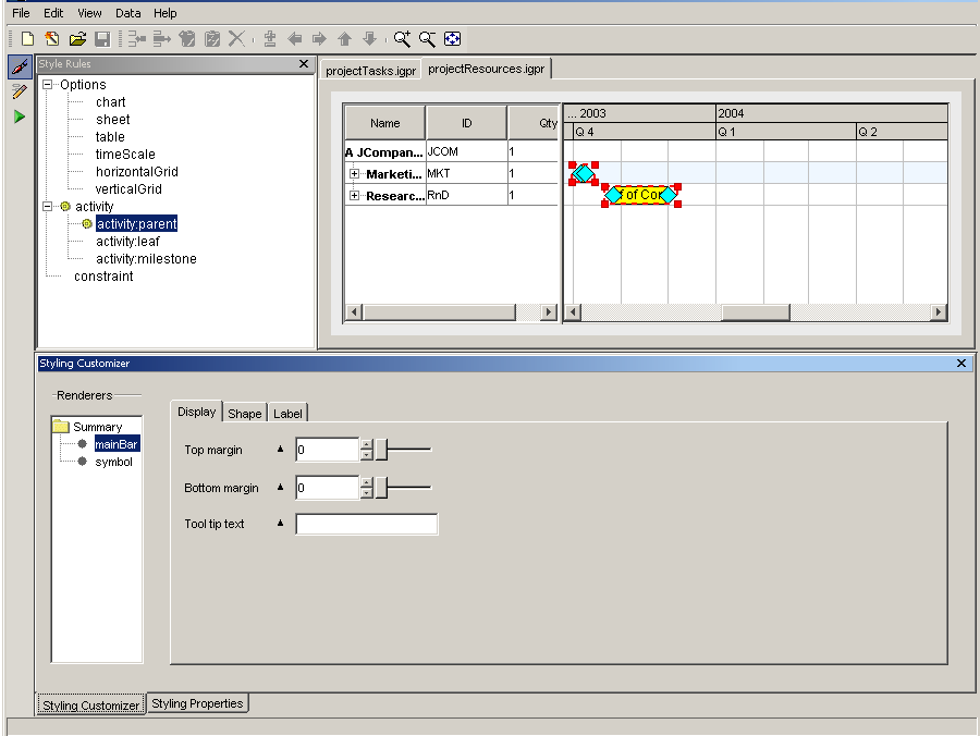 As a Java® developer, you can decide to build chart components with the Java API of JViews Gantt and the CSS2 styling language. Starting with a point-and-click editor like the Designer will make the early phases of development easier and faster.