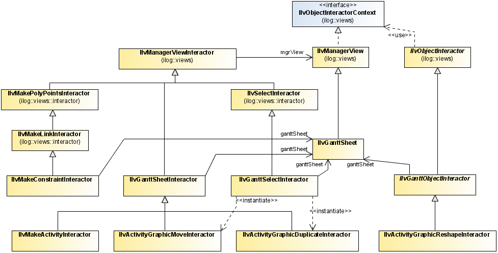 Several predefined interactors are implemented in the Gantt sheet for the following purposes: