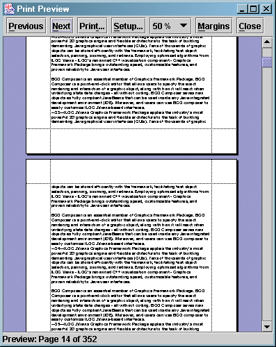 IlvPrintPreviewPanel - A Swing panel that displays the document to preview.
