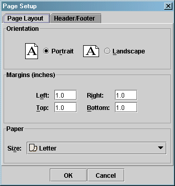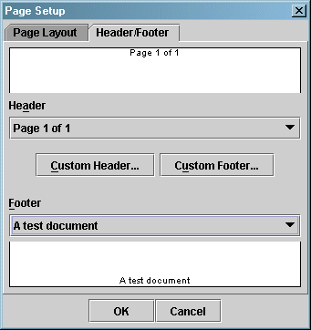 This dialog box is composed of a JTabbedPane with two tabs: one to edit the page format, and one to edit the header and footer.
