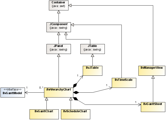 Gantt charts can be activity based ( IlvGanttChart) or resource based ( IlvScheduleChart). The classes for the different types of Gantt chart are encapsulated by the high level beans described in The Gantt beans.