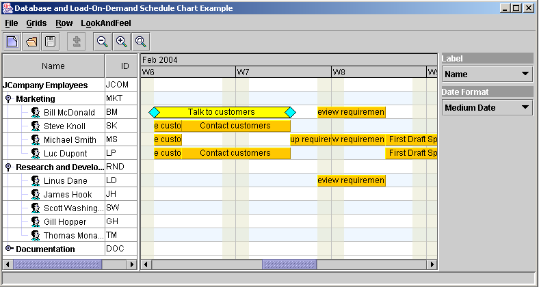 The following figure shows an activity-based Gantt chart from the Gantt Viewer sample.