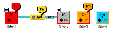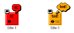The color of the base element and the color of the alarm balloon are those associated with the most severe new alarm (see Raw alarm color coding scheme).