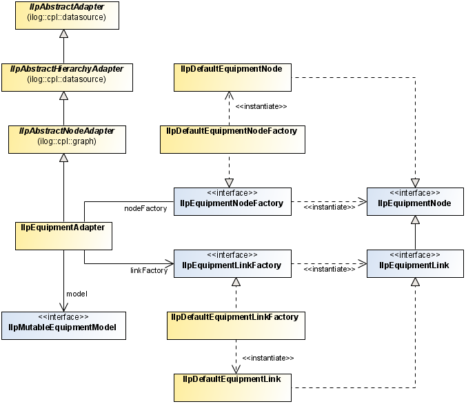 Similarly, links are created with an IlpEquipmentLinkFactory. By default, this factory is an instance of the class IlpDefaultEquipmentLinkFactory which creates IlpDefaultEquipmentLink instances.