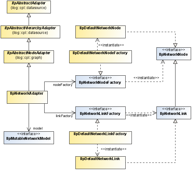 Similarly, links are created with an IlpNetworkLinkFactory. By default, this factory is an instance of the class IlpDefaultNetworkLinkFactory, which creates IlpDefaultNetworkLink instances.