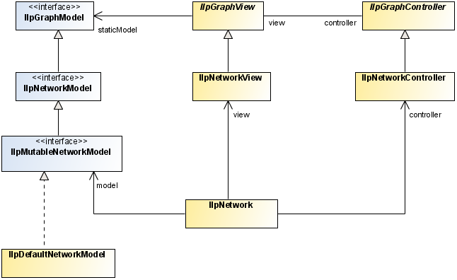 The interface IlpMutableNetworkModel provides API facilities for adding and removing objects. The two network model interfaces are implemented through the class IlpDefaultNetworkModel. Instances of IlpNetwork use the class IlpDefaultNetworkModel.