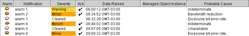 Objects of class IltAlarm are represented as follows in the table: