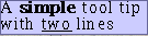 toolTipText: "<HTML>A <b>simple</b> tool tip<br>with <u>two</u> lines</