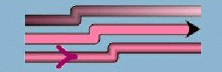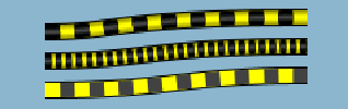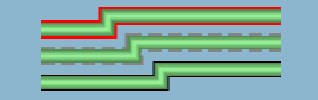 The lineStylePhase property sets the initial offset. If no lineStyle is specified, the phase is proportional to twice the line width. In the following figure, the bottom link starts the alternate color one segment later than the top one.