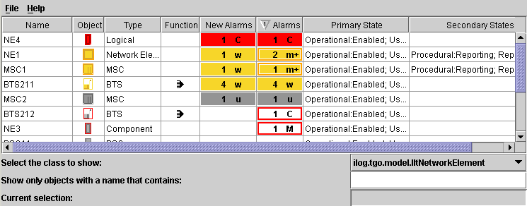 The JViews TGO table component is based on the Swing table component. It displays objects in rows and their attributes in columns.