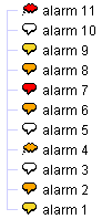 In the tree component, each alarm object is represented as a node. The graphical representation is the same as in the table component. See the following figure.