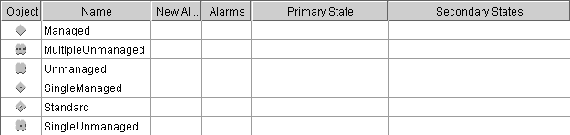 Like network elements, ports and LEDs, off-page connectors are represented in the tree and table components with a reduced version of the type representation.