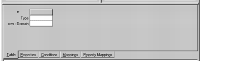 Each column in the table represents a column in the Main data source. The row labeled Type specifies the data type of the entry for the given column. Each column in the table contains the data related to one server object attribute. If a column is too narrow, you can resize it by dragging the column delimiters.