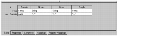 In the previous section, you created a table representation, which means that you created two data source tables. As you can see, these tables are empty. The Main data source table, called DomainsOfNetwork::table, represents a network with its associated domains appearing as rows in the table.