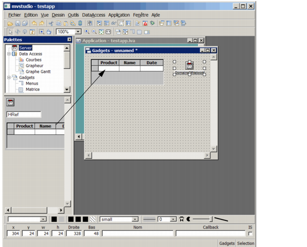2. Drag a table gadget from the Server palette to the Main window as shown below.