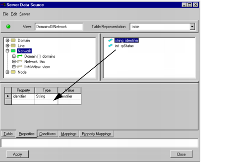 4. From the top right pane, drag identifier and drop it into the empty row in the Properties table.