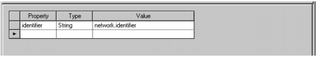 2. In the empty row of the Properties table, choose String as the type, type identifier in the Property column, and type network.identifier in the Value column.