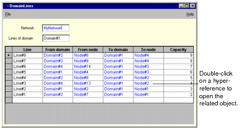 1. In the DomainsOfNetwork panel, double-click on the three dots at the intersection of row Domain#1 and column Lines.