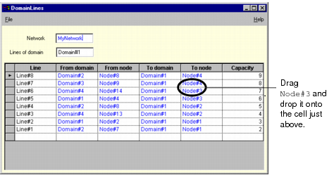 2. Point to the Node#3 hyper-reference in the Line#6 row and drag it over Node#4 in the Line#7 row.