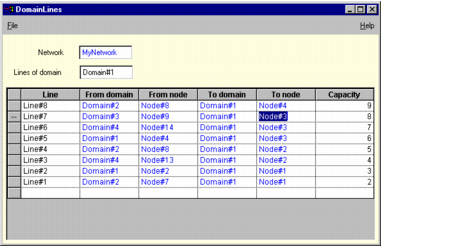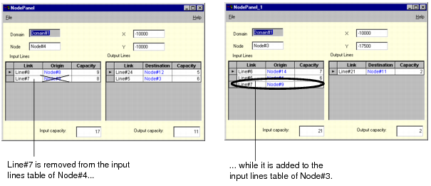 The Domain Lines panel for Domain#1 now appears as illustrated below: Node#3 has replaced Node#4 on Line#7.
