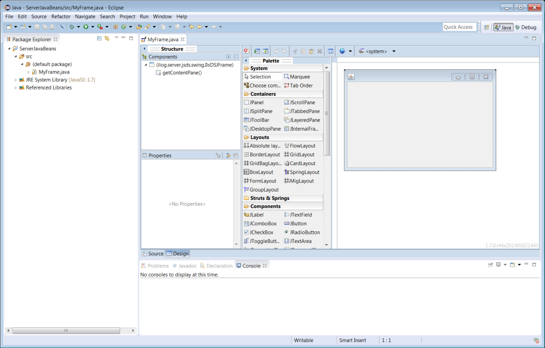 3. In your IDE, switch to Design mode to design your frame graphically.