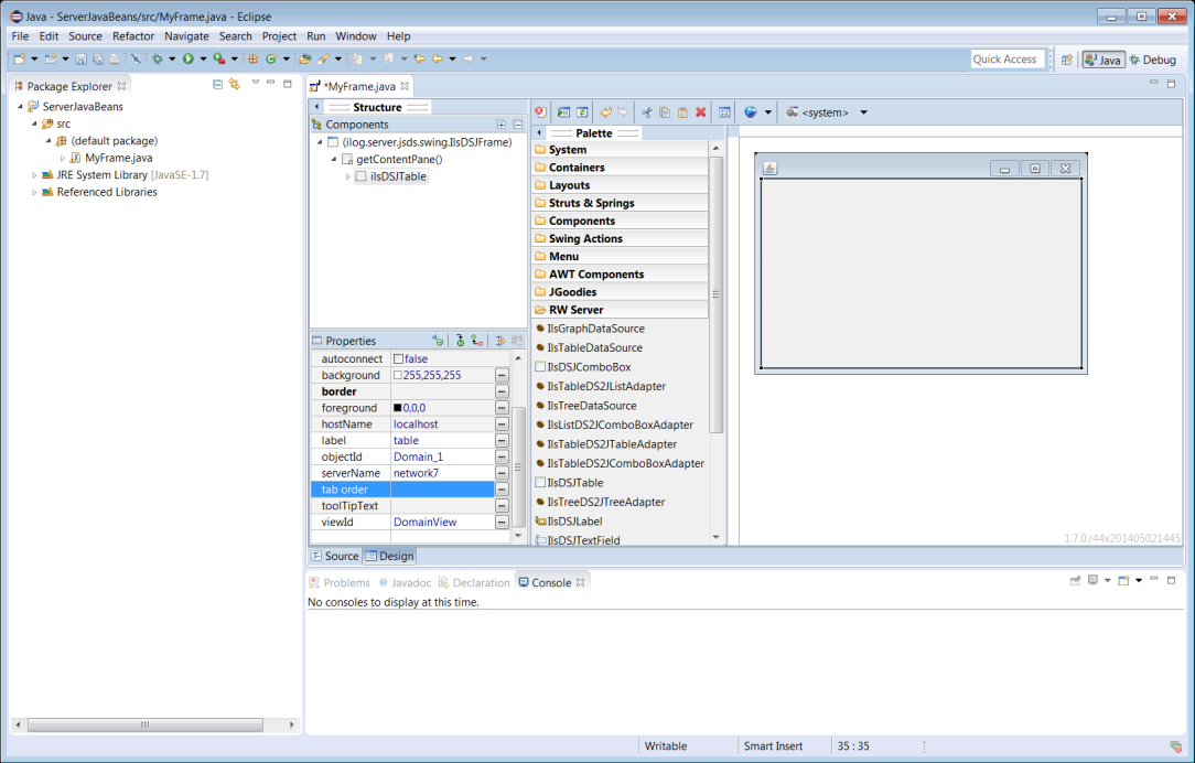 You have finished designing your graphical user interface. Now, you want to initialize the Java data source library, connect it to the object server, and open the view.