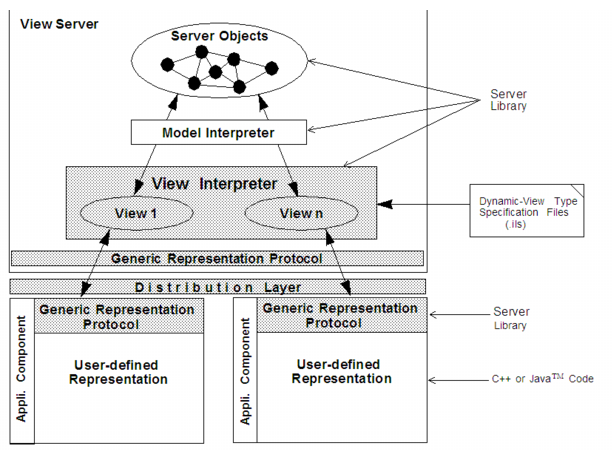 object model at runtime. These interface services cover both the server side and the component side, making the distribution layer between a view server and its components transparent. On the component side, the dynamic view services feature a