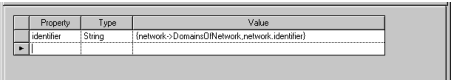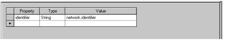 2. In the empty row of the Properties table, choose String as the type, type identifier in the Property column, and type network.identifier in the Value column.