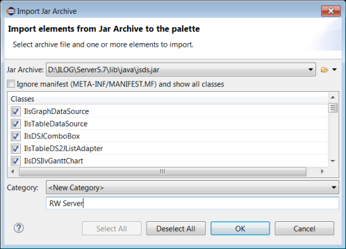 3. Select the jsds.jar in your Server installation directory (in lib/java/jsds.jar) and choose to put them in a new category for instance named RW Server.