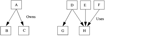 Rogue Wave® Server lets you establish two kinds of relations among C++ objects: OWNS-A relations, that we will call ownership relations, and USES-A relations, that we will call use relations.