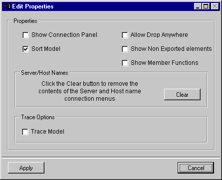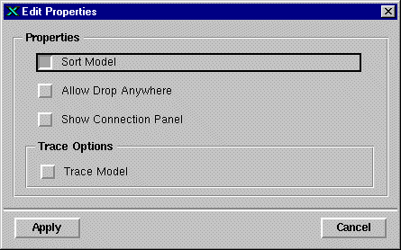 This box can be checked to trace the model information that is sent from the object model server to the inspector when the model is loaded. The trace is sent to the log window. To open this window, select the Show Log command from the File menu.