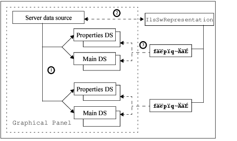 2. Connection between the Server data source and the representation of a view (created as an instance of the class IlsSwRepresentation or one of its subclasses) is made as soon as that view is opened in the component.