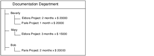 A tree structure: The participation of the employees of one department in various projects with their related costs.
