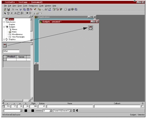 Drag the Server Data Source icon from the Server Palette to the Main window and double-click on it.