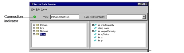 The grey table on the next page describes how the Network object model appears once loaded in the Server Data Source inspector.