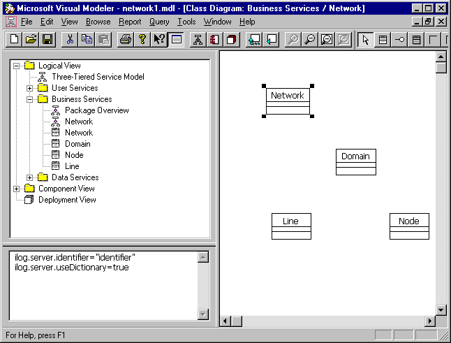 in the main toolbar and create four empty classes in a new diagram.As we want to define the Network class as an identified class, you will now add a specific Server property to tag this class.