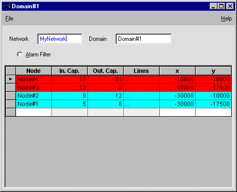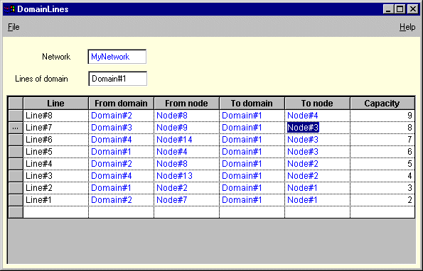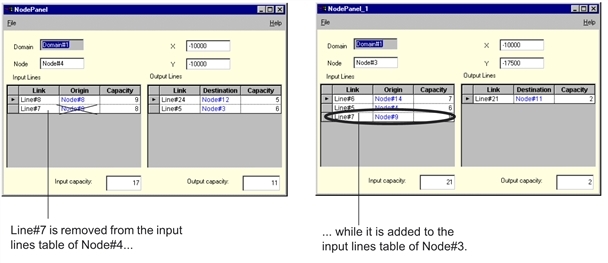 The Domain Lines panel for Domain#1 now appears as illustrated below: Node#3 has replaced Node#4 on Line#7.