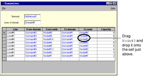 Point to the Node#3 hyper-reference in the Line#6 row and drag it over Node#4 in the Line#7 row.