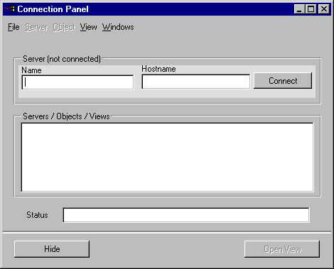 The predefined Views client application swcomp lets you connect to an object server and open views of that server that were designed using Server Studio.