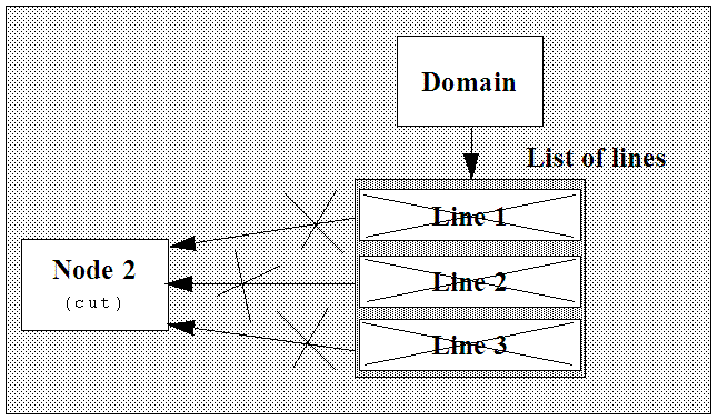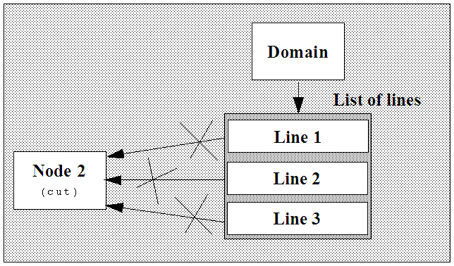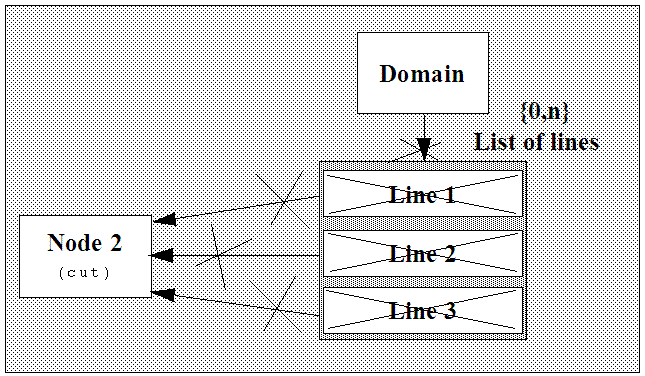 In the Network example, the relation between a domain and lines is a list relation: a domain owns several lines. According to the rules defined for our server object model, a node must always have at least one incoming or outgoing line, otherwise, this node will be cut.
