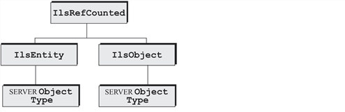 The class IlsRefCounted is the base class for IlsEntity and IlsObject, which are in turn base classes for all Server object types.