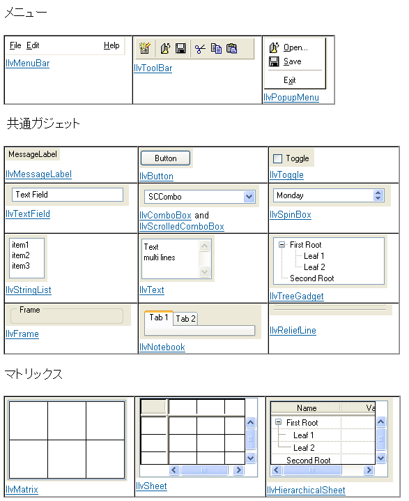 ガジェットには、テーブル、ツリー、リスト、ダイアログなどが含まれます。