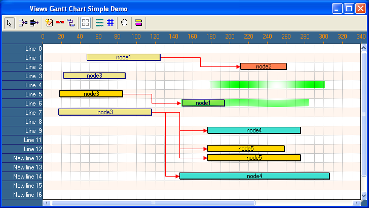 Gantt Chart パッケージは Rogue Wave® Views 基本製品の中に含まれています。Gantt Chart はスケジューリング・データの表示と編集を管理します。スケジューリングは、リソースを一定期間でアクティビティーに割り当てるプロセスです。