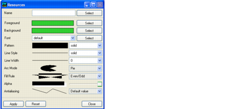 5. Click Apply in the Resources panel and then Close to close the Resources panel.
