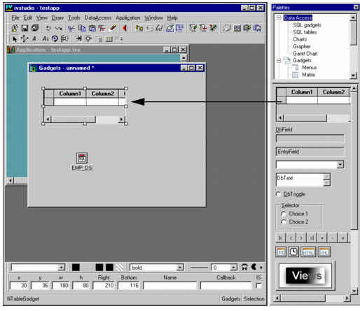 Once you have mapped the data source to the desired tables in the database, you can then display the data by means of Data Access gadgets. To connect a gadget to the data source, see the following procedure: