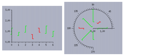 Figure 8.10 High-Low Displayers in a Cartesian Chart and in a Polar Chart