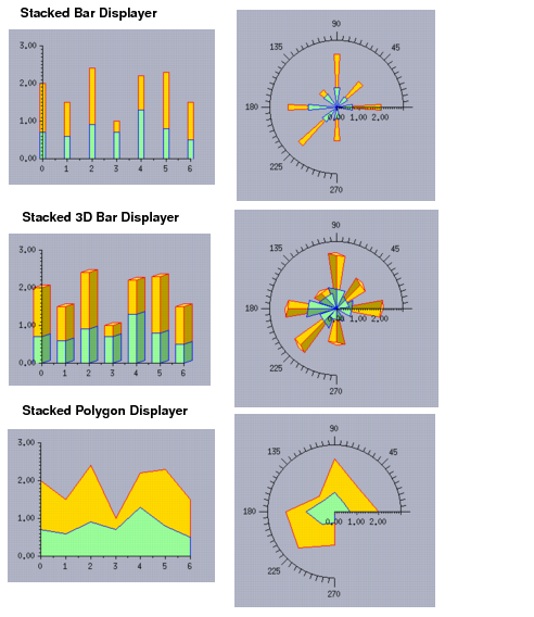 Figure 8.15 Stacked Displayers in Cartesian Charts and in Polar Charts