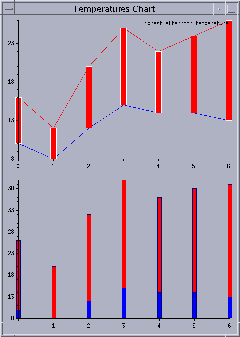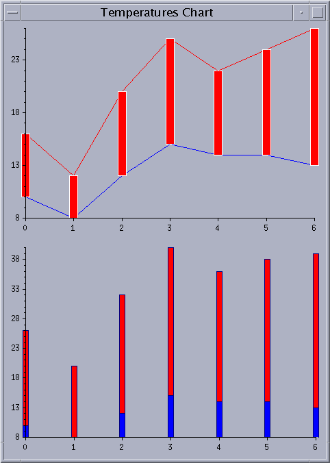 where chart1->getDisplayer(2) corresponds to the high-low bar displayer representing the afternoon mean temperatures data set in the first chart.