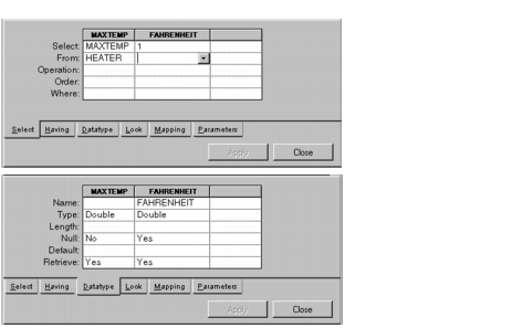 void ILVCALLBACK MyFetchRowCallback(IlvGraphic* g, IlAny) { IliSQLDataSource* ds = (IliSQLDataSource*)g; IliSQLTable* tbl = ds->getSQLTable(); IlInt rowno = ds->getFetchedRow(); IliTableBuffer* buf = tbl->getBuffer(); buf->rowToBuffer(rowno); IlDouble celsius = buf->at(“MAXTEMP”).asInteger(); IlDouble fahrenheit = CelsiusToFahrenheit(celsius); buf->at(“FAHRENHEIT”) = IliValue(fahrenheit); tbl->updateRowInCache(rowno, buf); tbl->releaseBuffer(buf); } ... IliSQLDataSource* ds = ...; ds->setCallback(IliDataSource::FetchRowSymbol(), MyFetchRowCallback); |